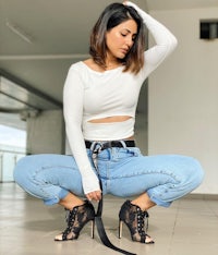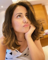 The current that flows down on cock just by listening to her name is unexplainable. This whore is so raw, so untamed and so underrated. Is she wild? Of ofcourse she is. An absolute cock craver, that’s what she is. Whenever it’s about Hina Khan randi, I find my mind full of evil fantasies only